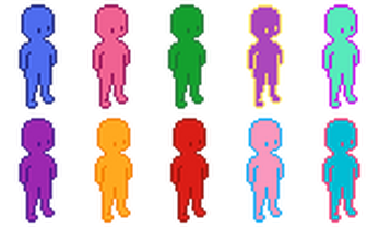 Same character in 10 different colors.
